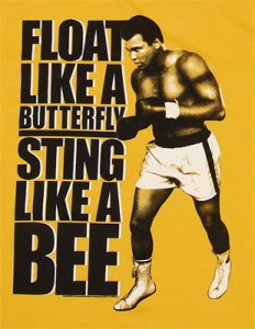 on this physical plane and made it outa here. It’s amazing how when someone like that makes transition how you seem to time travel back to those poignant moments when they touched your life in a memorable way. Today, I went all the way back to 1971 when he lost that fight. I was in tears, standing near the mailbox, letter in hand, addressed with only his name, telling him how much I loved him and supported him and prayed for him. I dropped that envelope into the mailbox, with no stamp, no return address and no expectation that he would ever receive it as I cried real tears for this man, this icon, my hero, my warrior, “who floated like a butterfly and stung like a bee.” It was a dark day for me because it felt like something cosmic had changed. I didn’t know what to call it back then. The word cosmic was not a part of my vocabulary, but I felt a serious shift in my consciousness and I cried. It felt like a great war had been lost.