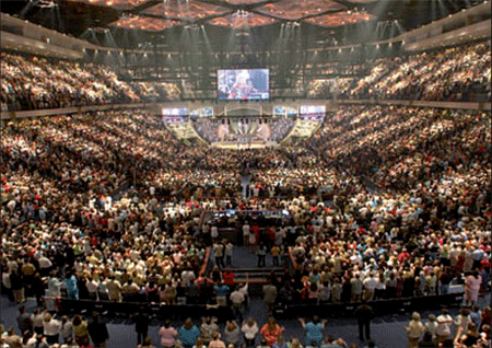 When Angelus Temple opened in Los Angeles in 1923 with seating for 5,300, the megachurch was born. An evangelical Christian congregation led by a charismatic pastor, committed to welcoming new believers, Bible-based but lacking conventional denominational boundaries, the new church drew huge crowds. Lakewood Church, founded in Houston in 1959, was another early example of the type. It was theologically conservative, racially inclusive, and popular from the start. By 1979 Lakewood was attracting more than 5,000 people to its services; today it is America’s largest church, with average weekly attendance of 43,000. (Megachurches are among the most integrated institutions in the U.S., averaging a 20-percent-minority mix of congregants, while Lakewood is 40 percent white, 30 percent black, 30 percent Hispanic.)