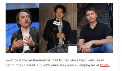 Now, folks can go through the changes of starting their own YouTube Platform. yeah, fat chance on that one.  Remember, YouTube was out there, with it’s initial creators, Chad Hurley, Steve Chen, and Jawed Karim,when they worked for PayPal.  Regular folks coming up with a brilliant idea in February 14, 2005. And then Google started sniffing around. Next thing you know, Google gave them an offer they couldn’t refuse, $1.65 Billion dollars in stock. By November 13, 2006, good ole YouTube is owned by Google and we all know what that means.
