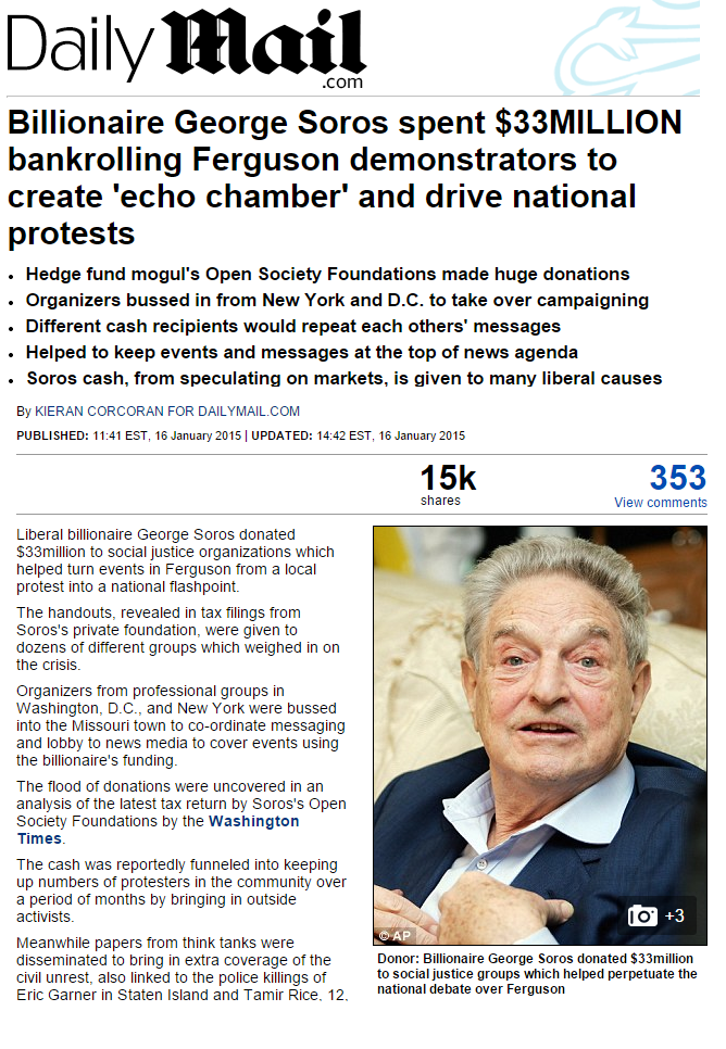 THIS website has numerous articles on SOROS and black lives matter in it’s archive but the article below is from THE DAILY MAIL , dated 1/16/15 and more updated video’s on the most recent protest.