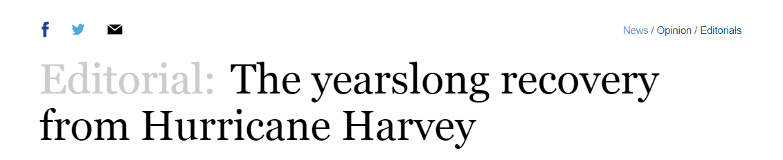 Houston and the surrounding areas most impacted by this storm is Ground Zero, 2017. How long will it take for them to transfer their focus from rebuilding war torn regions, half way around the world due to America’s complicity, to rebuilding the lives of those folks impacted by Harvey. If history is any measure of the response then maybe bringing Katrina victims back to show them how it should be done would be a better idea.